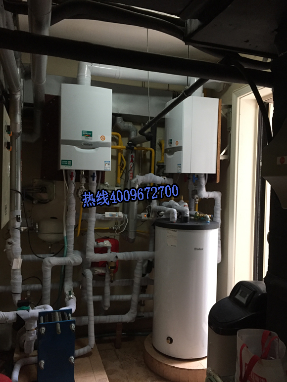 产品配置;德国威乐循环泵三台、意大利齐尔美特膨胀罐三台、威能200L水箱一台、威能进口冷凝46千瓦壁挂炉两台、板式换热器一台及安装附件。